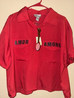 Spoon Jeans Red AMOR AMORE Button Up Shirt 2XL$10Dearborn Heights, MI