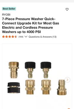 RYOBI 7-Piece Pressure Washer Quick-Connect Upgrade Kit for Most Gas Electric and Cordless Pressure Washers up to 4000 PSI $30Pomona, CA