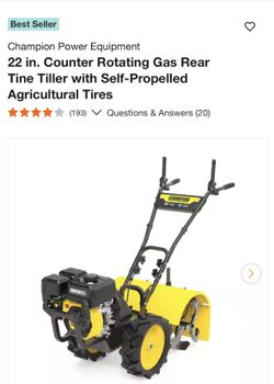 Champion Power Equipment 22 in. Counter Rotating Gas Rear Tine Tiller with Self-Propelled Agricultural Tires$450Pomona, CA