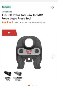 Milwaukee 1 in. IPS Press Tool Jaw for M12 Force Logic Press Tool$270La Verne, CA
