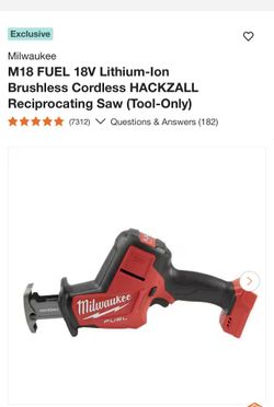 Milwaukee M18 FUEL 18V Lithium-Ion Brushless Cordless HACKZALL Reciprocating Saw (Tool-Only)$160La Verne, CA