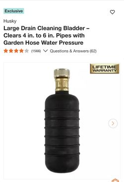 Husky Large Drain Cleaning Bladder – Clears 4 in. to 6 in. Pipes with Garden Hose Water Pressure$20Pomona, CA