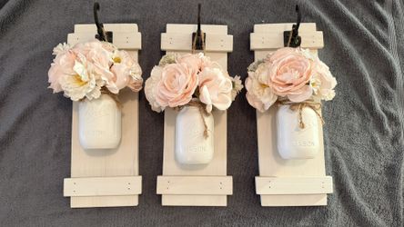 Set of 3 Mason Jar Wall Sconces – White Wood Farmhouse Floral Wall Decor$45Highland, CA