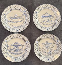 Cordon Bleu International Blue & White Teapot Plates – Set of 4 – Hand-Decorated$25Highland, CA