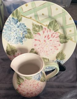 Maxcera Hydrangea Mist Hand-Painted Plate & Pitcher Set with Display Stand – Cottage Floral Decor$35Highland, CA