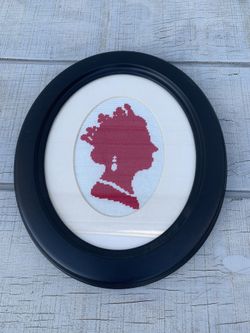 Cross-Stitch Silhouette Portrait, Handcrafted Red on Cream, Oval black Frame 13”$45Germantown, MD
