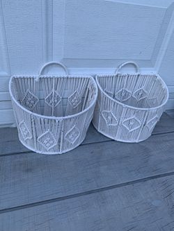 Ashland 2 White Macrame & Wire Wall /Shelf Storage Basket Organizers Boho Rope$45Germantown, MD