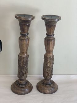 Hand Carved Wooden Pillar Candle Holders Rustic Farmhouse 18”Tall Set of 2 India$75Germantown, MD