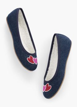 Talbots Blakely Denim Ballet Slippers Cozy Sherpa Lined Heart Beaded Size 7M$35Germantown, MD