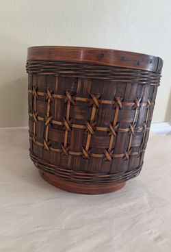 Vintage Handwoven Lacquered Rattan Cachepot Boho MCM Ikebana Basket 7”$45Germantown, MD