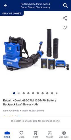 Kobalt Backpack Blower 40 Volt X 2$200Vancouver, WA