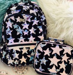 Star Velvet Flip Sequin Backpack and lunch box. New with tags. Girls love them! Backpack 12" W x 5" L x 17" H. lunch box 10" W x 3.5" L x 8" H. Brunda$35Bakersfield, CA