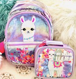 No Drama Llama Flip Sequin Shaky Backpack and lunch box. New with tags. Girls love them! Backpack 12" W x 5" L x 17" H. lunch box 10" W x 3.5" L x 8" $35Bakersfield, CA