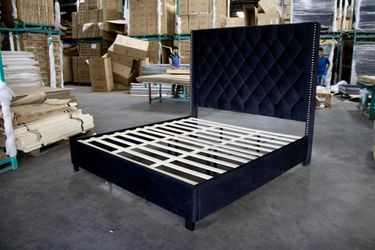 Queen Blue New 📦 3PC Velvet Bed Set - (Bed + Mattress + Box Spring) - Same Day Delivery Available $365Dallas, TX