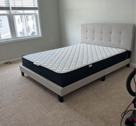 King beige New 📦 Velvet Platform Bed With Mattress - Same Day Delivery. $445Dallas, TX