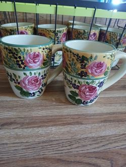 8 Heavy Handpainted Mugs With Basket$15Porterville, CA