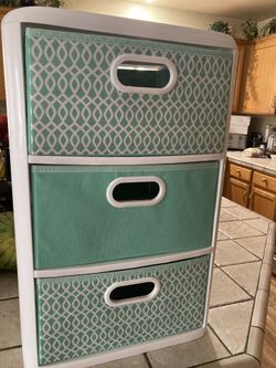 White plastic drawer unit with fabric bins$35Arlington, WA