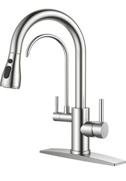 FORIOUS Kitchen Faucets with Water Filter, 2 in 1 Stainless Steel Pull Down Sink Faucet and Purified Water Faucet Rustic High Arc Single Handle with D$45Seal Beach, CA