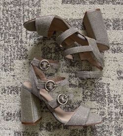 New Prezioso metallic block-heel sandals with multiple buckle straps Size 7 $125Kirkland, WA