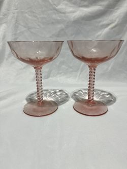 Central Glass Works 1426 Pink Glass Diamond Optic 4 7/8" Champagne Tall Sherbet Set Of 2 $11North Las Vegas, NV
