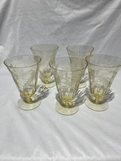 Fostoria Trojan Topaz yellow vintage fruit cocktail glasses set of 5 $18North Las Vegas, NV