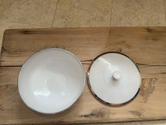 Milk glass vintage silver rim 3 1/2 quart bowl heat proof USA MADE Vintage 50's$30Burbank, CA