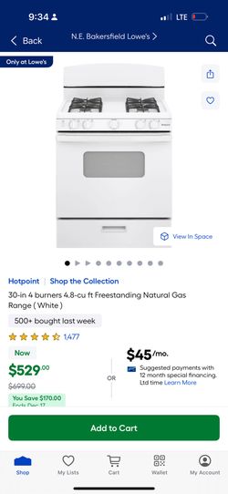 Hotpoint 30-in 4 burners 4.8-cu ft Freestanding Natural Gas Range (White )$400Bakersfield, CA