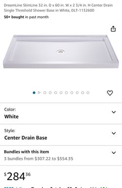 DreamLine SlimLine 32 in. D x 60 in. W x 2 3/4 in. H Center Drain Single Threshold Shower Base $180Bakersfield, CA