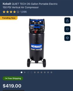 Kobalt QUIET TECH 26-Gallons Portable Electric 150 PSI Vertical Air Compressor$300Bakersfield, CA