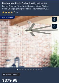 EightyFour 84-Inches Brushed Nickel with Brushed Nickel Blades Color-Changing Integrated LED Fixture Indoor/Outdoor Ceiling Fan$300Bakersfield, CA