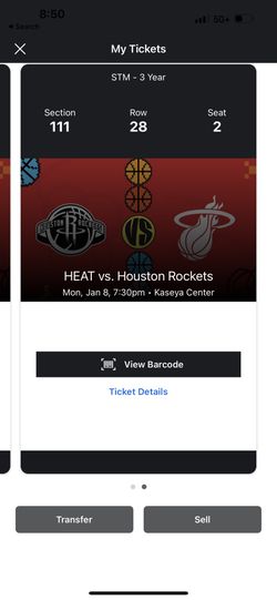 Monday 1/8. Heat Vs Houston Rockets Sec 111 Row 28 Seats 1-2 $150 For Both $150Miami, FL
