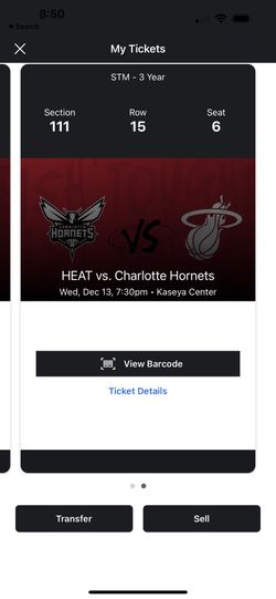 Miami Heat Va Charlottes Hornets Tuesday 10/10/2023 Sec 111 Row 28 Seat 1-2 $120 Both Tickets $120Miami, FL