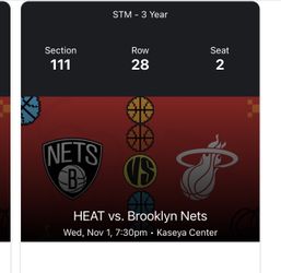 Miami Heat Va Brooklyn Nets Sec 111 Row 28 Seats 1-2 $160 For Both $160Miami, FL