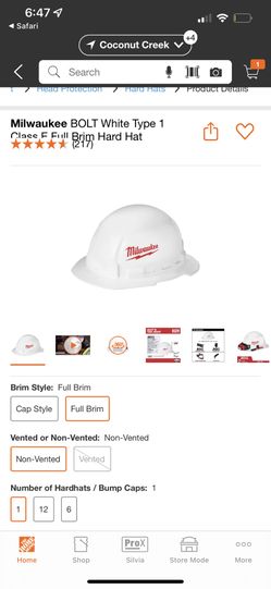 Milwaukee BOLT White Type 1 Class E Full Brim Hard Hat$25Fort Lauderdale, FL