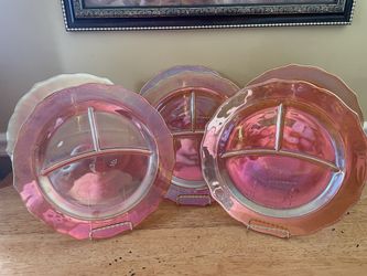 Vtg Iridescent Carnival Glass Divided 11" Plates Federal Rose Garden Amber$150Yalesville, CT