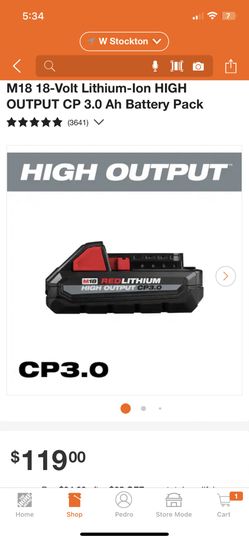 Milwaukee M18 18-Volt Lithium-Ion HIGH OUTPUT CP 3.0 Ah Battery$60Stockton, CA