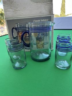 Tonala Artistry Cobalt Spiral Pitcher & 4 Glass Set Hand Blown Made In Mexico$12City Of Industry, CA