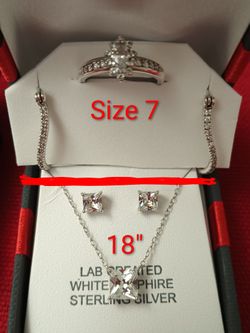 925 Silver Engagement Ring with Earrings OR Princess Cut Studs with Necklace EACH SET FOR $50$50Harlingen, TX
