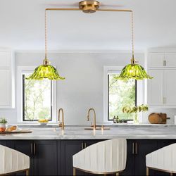 Brass Vintage Pendant Light Fixtures Modern Chandelier with Green Flower Glass$40Redwood City, CA