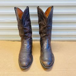 Vintage Lucchese 2000 T3099R4 Boots Walnut Brown Mens Size 10.5 2E Cowboy . Nice leather but heel needs fixing. Check all the pictures for condition.$109Houston, TX