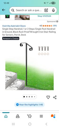 Single Step Handrail,1 or 2 Steps Single Post Handrail in Ground, Black Rust-Proof Wrought Iron Stair Railing for Seniors, Porch, Deck Amazon's Choice$40Garden Grove, CA