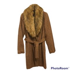 Womens Ivanka Trump Wool Wrap Coat Belted Faux Fur Collar Camel Size 10, NWT$100Las Vegas, NV