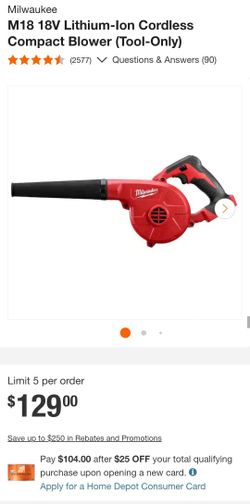 M18 18V Lithium-Ion Cordless Compact Blower (Tool-Only)$100Riverside, CA