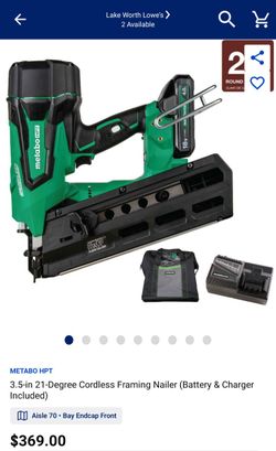 Metabo HPT 3 1/2" 18V Cordless Strip Framing Nailer with Battery, Charger and Bag$300Fort Worth, TX