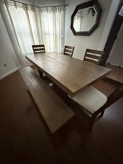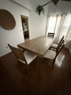 Wood Dining Table With White Canvas Seats $500Stockton, CA