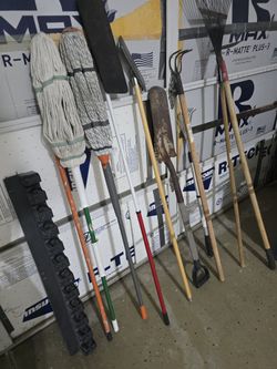 Garden tools, mops, tool storage rack$35Mesa, AZ