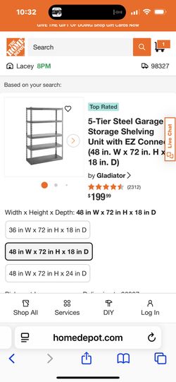 Gladiator Metal Shelf 48x72x18$75Dupont, WA