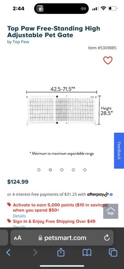 Top Paw Free-Standing High Adjustable Pet Gate$60Dupont, WA