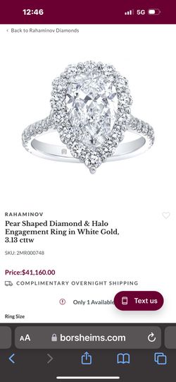 RAHAMINOV Pear Shaped Diamond & Halo Engagement Ring in White Gold, 3.13 cttw$25,000Dupont, WA