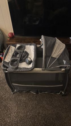 Baby Trend Deluxe II Nursery Center Portable Playard - Misty Gray: Includes Canopy, Bassinet, Vibration, Locking Wheels$135Visalia, CA